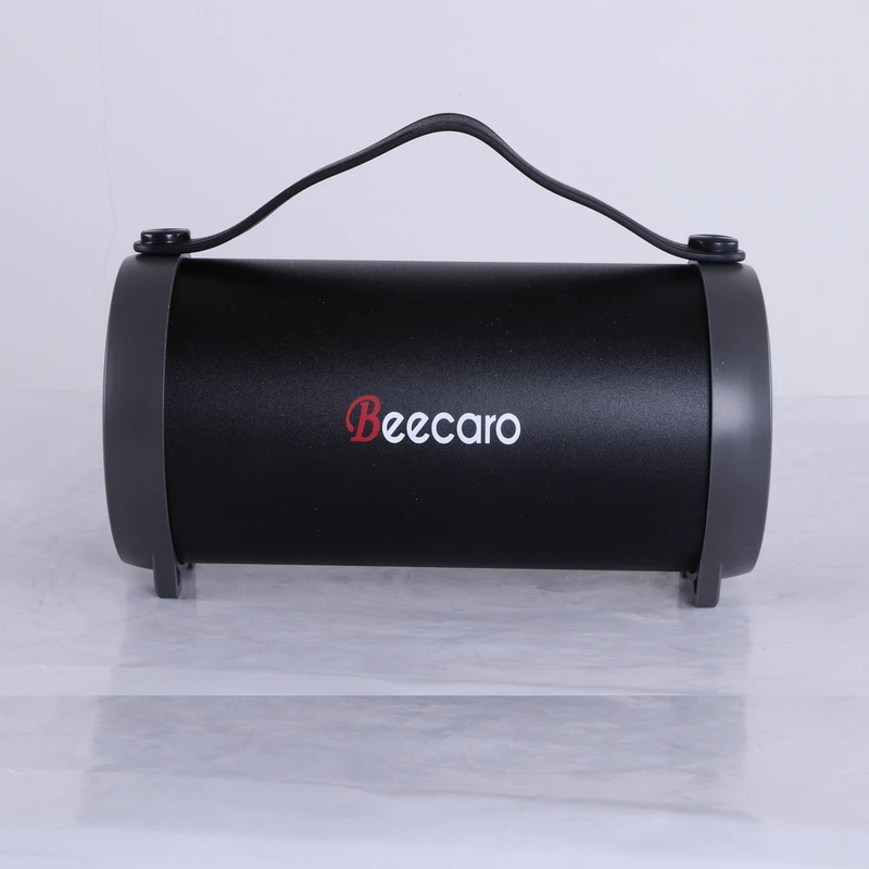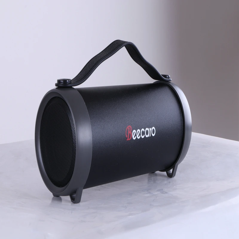 بدنه زیبای اسپیکر بلوتوث s33d بیکارو به شکل استوانه طراحی شده است جنس بدنه اسپیکر بی سیم S33d از پلاستیک فشره است و با کیفیت بسیار بالایی در کنار هم مونتاژ شده است. دو قاب پلاستیکی کمرنگ درایور اسپیکر را در بر گرفته اند و پوشش توری فلزی به کار رفته در دو طرف آن ها از آسیب فیزیکی به اجزای حساس داخلی جلوگیری می کند.پنل کنترلی بلندگوی بلوتوث s33d شامل 4 دکمه برای انتخاب وضعیت پخش، توقف آهنگ و جلو و عقب بردن قطعه در حال پخش است و تنظیم حجم صدا نیز با کمک دو دکمه اخیر انجام می شود. روشن و خاموش کردن دستگاه از طریق یک کلید کشویی صورت می پذیرد و در کنار آن می توان پورت USB، شیار کارت حافظه، جک 3.5 میلی متری AUX و کانکتور microUSB برای شارژ را مشاهده کرد. هنگام زدن اسپیکر بلوتوثs33d بیکارو به شارژ، یک LED کوچک در زیر کانکتور آن روشن می شود تا شما را در جریان روند تکمیل شارژ قرار دهد.