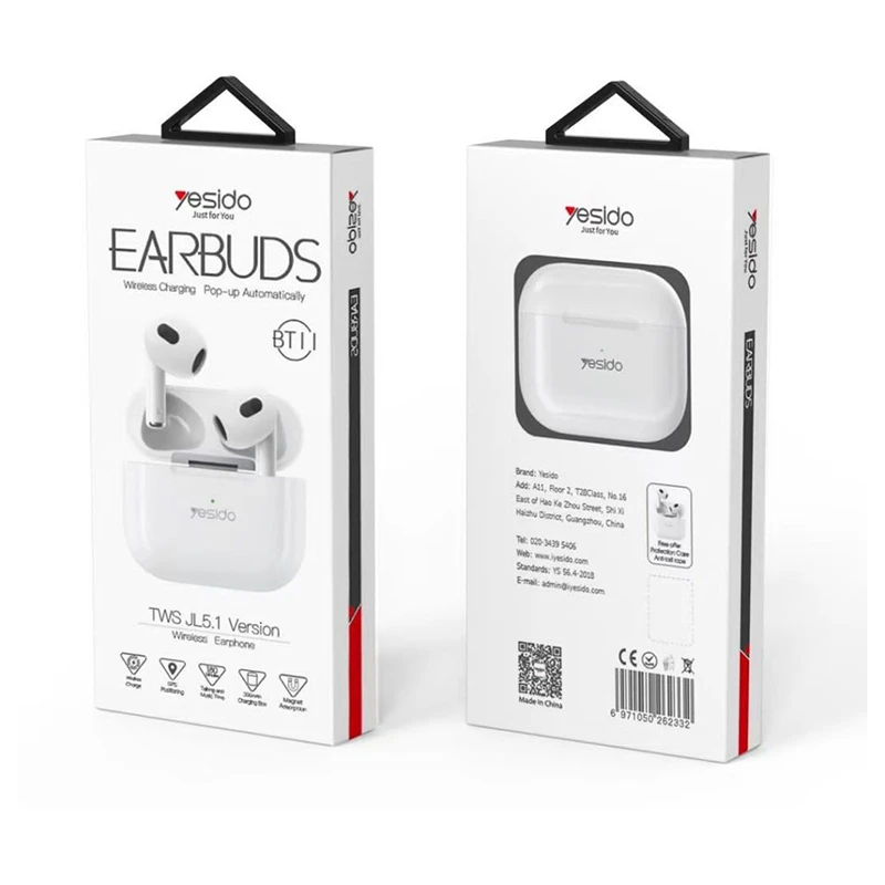 ایرپاد بلوتوثی Yesido BT11 با طراحی دوگوشی نیمه داخل‌گوشی، تجربه‌ای راحت برای تماس و موسیقی فراهم می‌کنه. این مدل از بلوتوث نسخه 5.1 بهره می‌بره که اتصال پایدار و سریع به گوشی‌های اندروید و iOS رو تضمین می‌کنه. بدنه از پلاستیک ABS مقاوم در برابر ضربه ساخته شده و کیس شارژ جمع‌وجور اون، حمل‌ونقل رو آسون کرده. کیفیت صدای استریو، میکروفون داخلی برای تماس، و کنترل لمسی از امکانات کاربردی این مدله. طراحی اون کاملاً شبیه سری ۳ ایرپاد اپله و برای استفاده روزمره، تماس‌های تلفنی و گوش‌دادن به موسیقی گزینه مناسبیه.