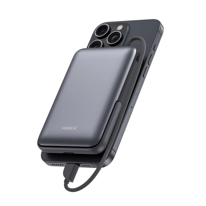 پاوربانک HISKA HP-133PD ظرفیت 10000MAH با بدنه مقاوم، طراحی خوشدست و نمایشگر LED، هم ظاهر حرفهای داره، هم عملکرد دقیق. قابلیت شارژ بیسیم، کابل Type-C همراه و چهار خروجی مختلف، این مدل رو به یه همراه همهکاره تبدیل کرده.