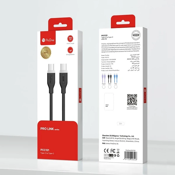 کابل تبدیل Type-C PD 60W به Type-C پرووان مدل PCC121