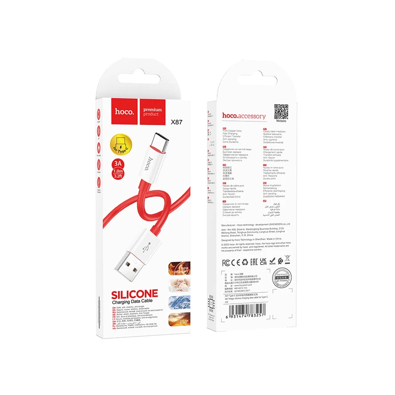 کابل شارژ USB به USB-C هوکو مدل X87 طول 1 متر